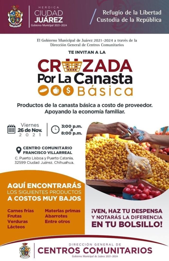 Ciudad Juárez, Chih .- María Antonieta Mendoza Mendoza, directora general de Centros Comunitarios, dio a conocer que diferentes productores se congregarán para ofertar a costos muy bajos carnes frías, frutas, verduras, lácteos, materias primas y abarrotes.