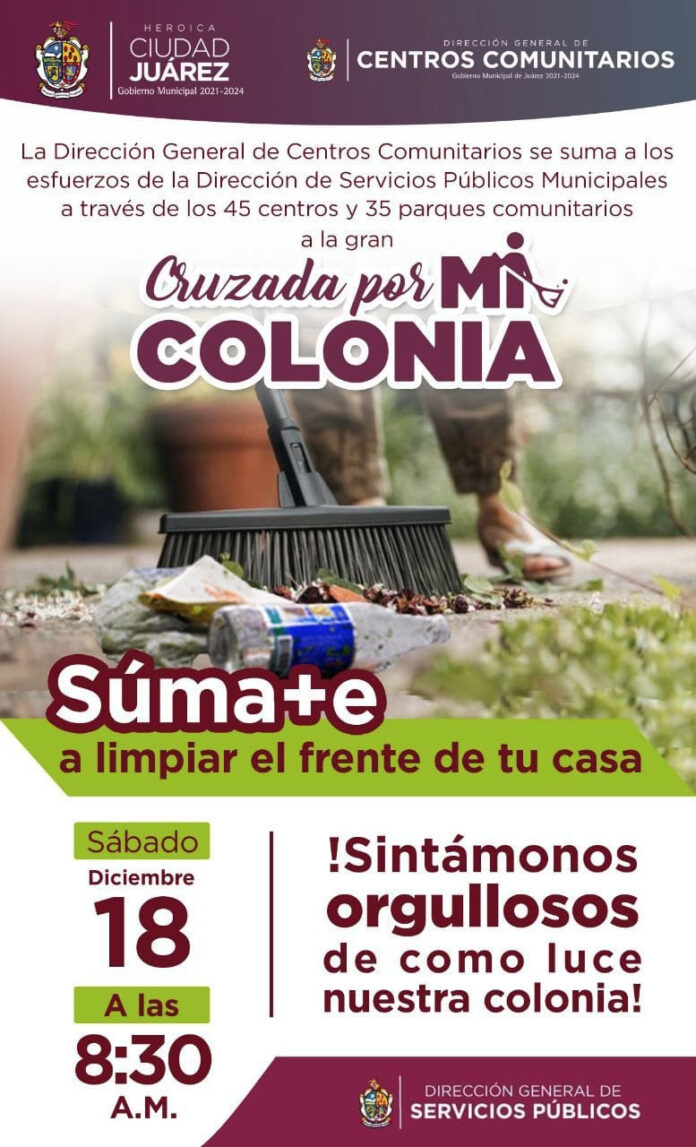 Ciudad Juárez, Chih .- María Antonieta Mendoza Mendoza, titular de la dependencia, comentó que participar en esta cruzada es sencillo, pues lo único que se requiere es limpiar el frente de la casa y mantener limpio el parque de su sector habitacional.