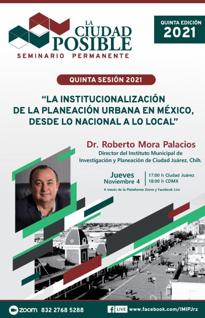 El Gobierno Municipal 2021-2024, invita a la comunidad a participar en la conferencia “La Institucionalización de la Planeación Urbana en México, desde lo Nacional a lo Local”, del doctor Roberto Mora Palacios, director del Instituto Municipal de Investigación y Planeación (IMIP).