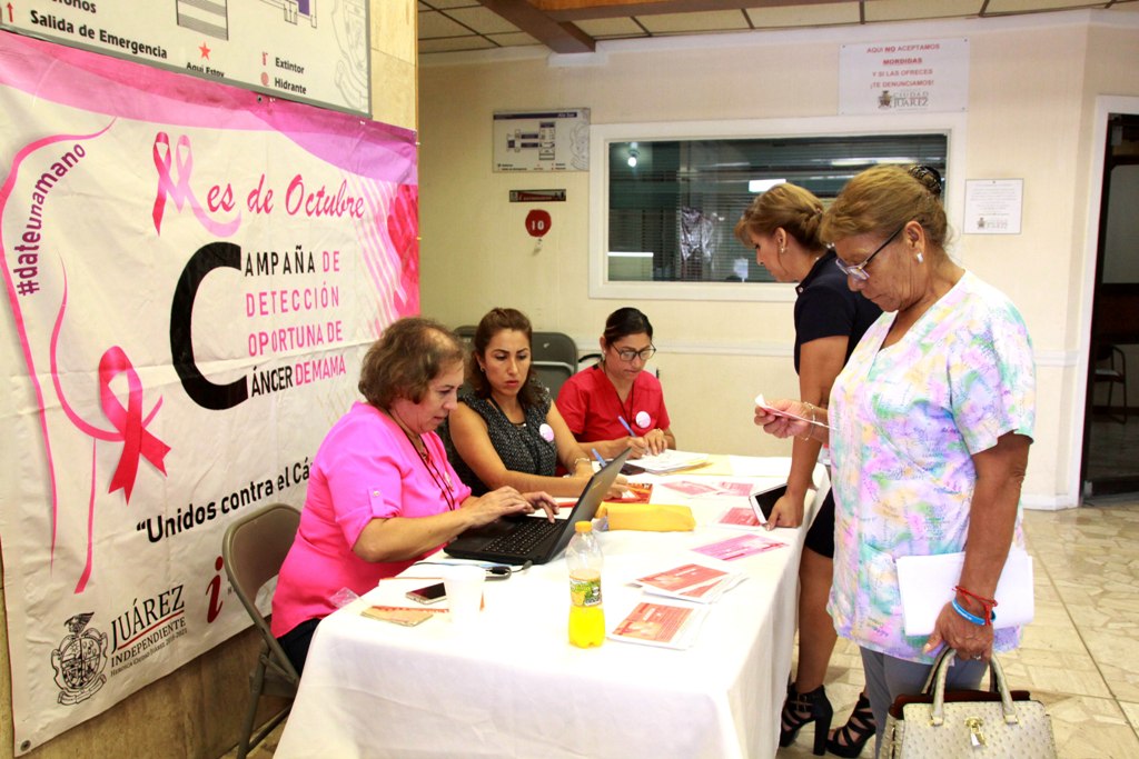 Ciudad Juárez, Chih. – La Dirección de Salud invita a participar en el mes de la prevención del cáncer de mama acudiendo al módulo instalado en la Unidad Administrativa “Benito Juárez”.