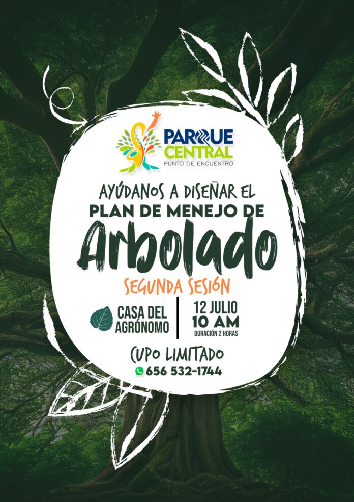 Ciudad Juárez, Chih .- Luego del éxito de la primera sesión del Plan de Manejo de Arbolado en abril, donde autoridades estatales, municipales, miembros de Arboles en Resistencia y ciudadanos participaron activamente, el coordinador general del Parque Central juarense,, anunció la segunda reunión.