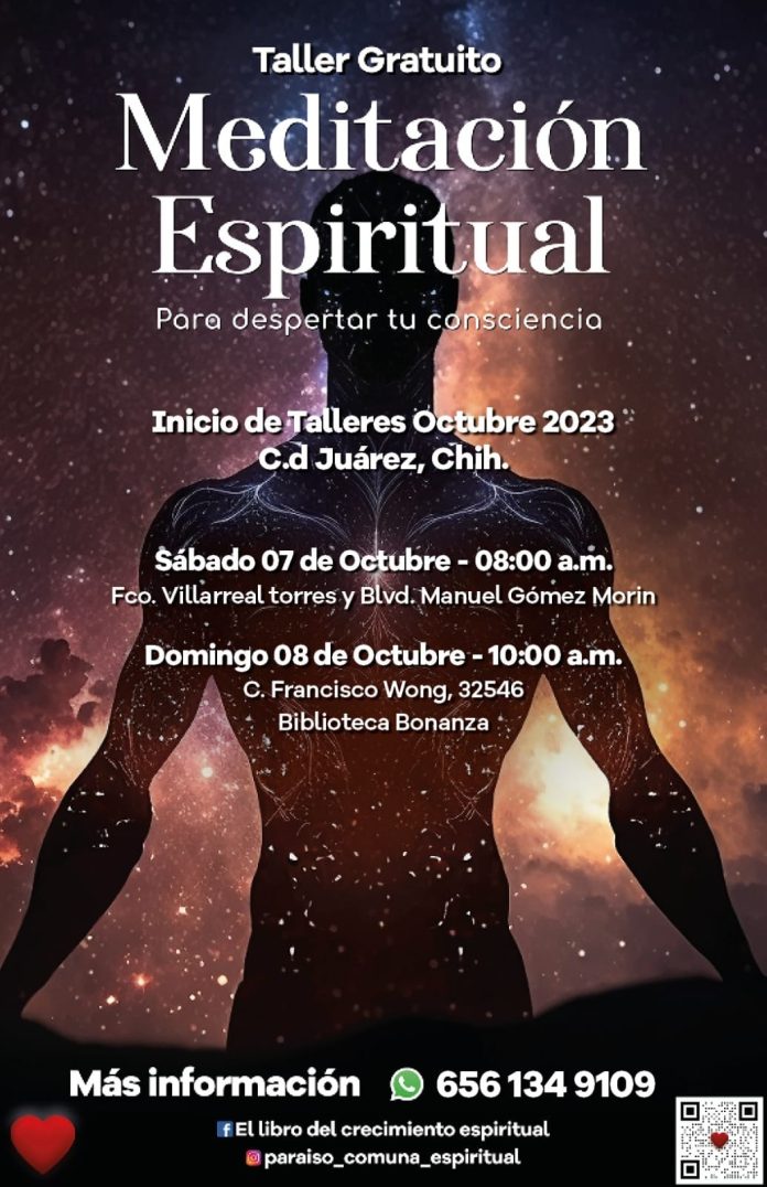 Ciudad Juárez, Chih .- La Dirección de Educación, a través de la Biblioteca Pública Municipal Bonanza, invita a los juarenses a participar en el taller gratuito de Meditación Espiritual que se realizará en dos sedes de esta frontera.