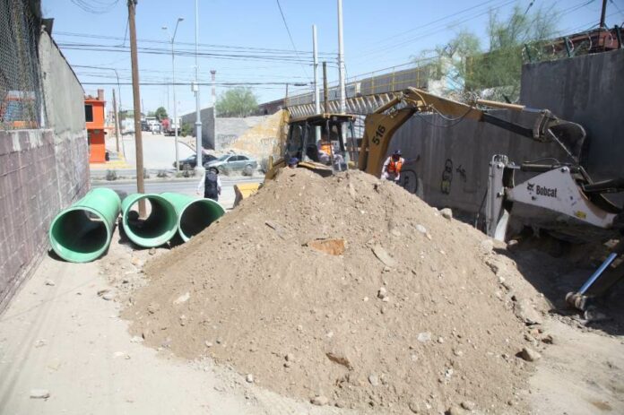 Ciudad Juárez, Chih .- Desde la tarde de ayer jueves 22, una cuadrilla acudió al lugar antes citado, donde trabajó con dos equipos de inyección y succión para tratar de extraer la obstrucción que se encuentra en la línea de alcantarillado.