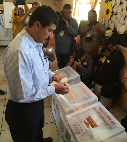 Javier Corral emite su voto al rededor de las 9:35 de esta mañana en la primaria Nicolás Bravo de Ciudad Júarez.