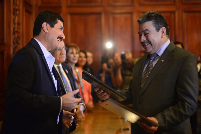 El gobernador Javier Corral, entregó el Premio al Mérito Médico 2016 de Pensiones Civiles del Estado (PCE) al doctor Jesús Alfredo Chitika Franco, quien durante 28 años se ha desempeñado en el área de la ginecología y obstetricia, por lo cual se hizo acreedor a una placa de reconocimiento y 50 mil pesos.
