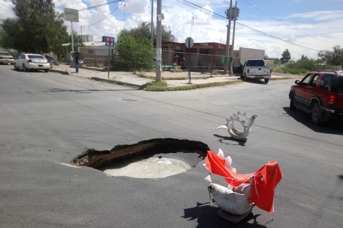Ciudad Juárez, Chih. – En conferencia de prensa el presidente de la JMAS Juárez Jorge Domínguez Cortés informó, que del 5 de septiembre a la fecha se han presentado 11 hundimientos, tras las precipitaciones pluviales.