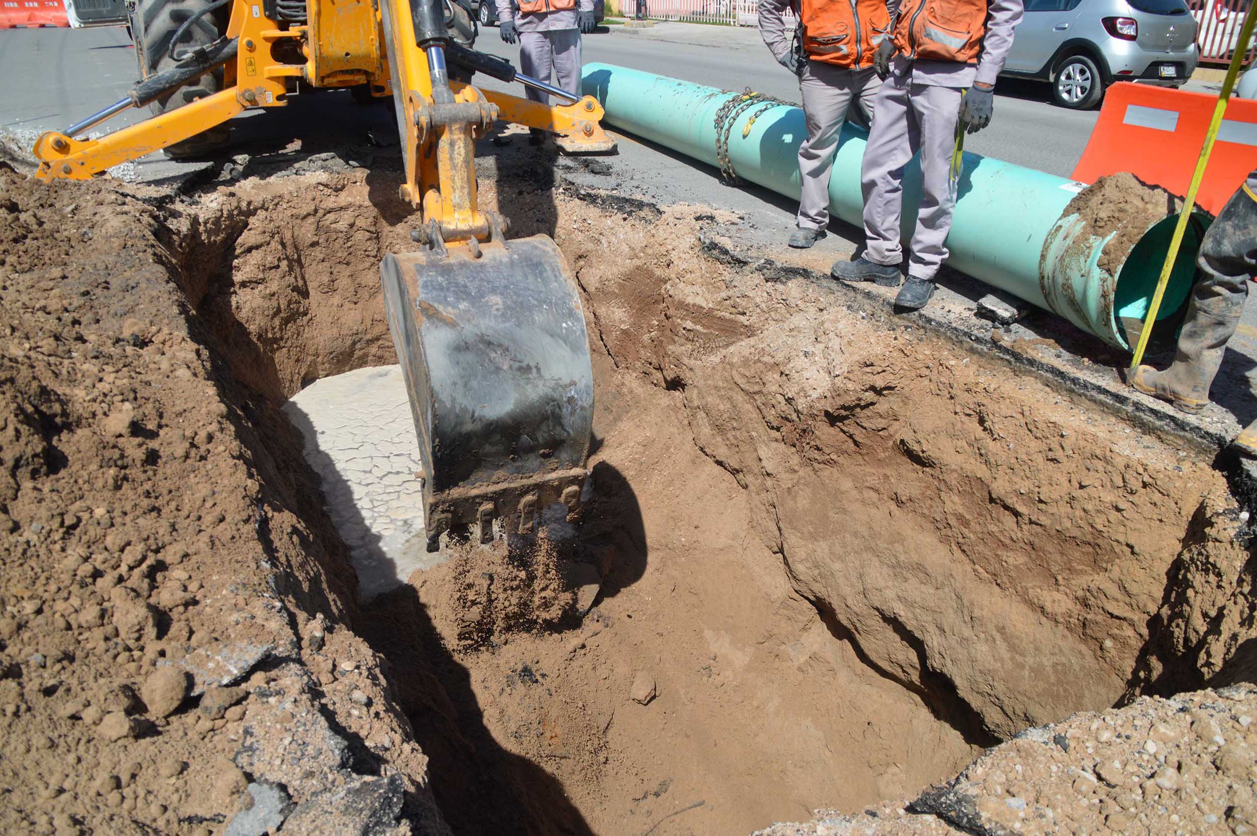 Ciudad Juárez, Chih. – Información proporcionada por la jefatura del departamento de Ingeniería menciona, que son 12 metros de tubería para alcantarillado de 24 pulgadas los que se instalan, a una profundidad de 2.5 metros.