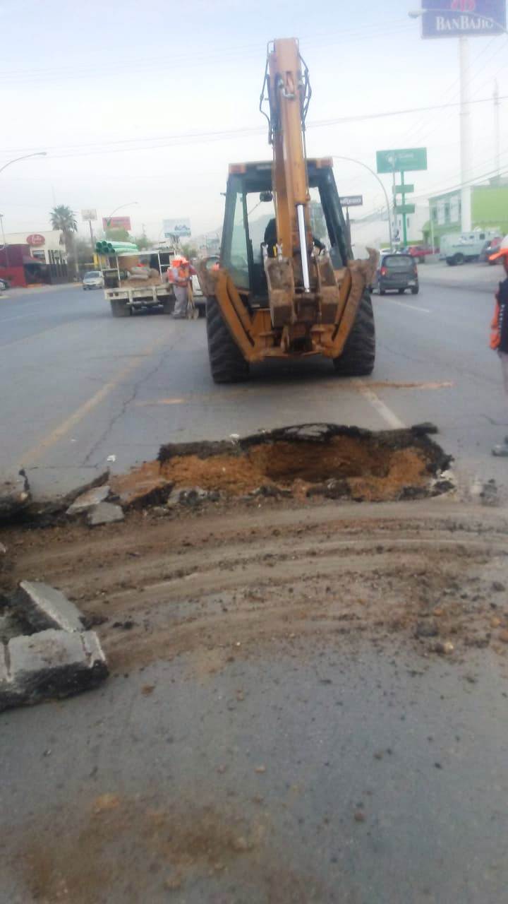 La JMAS Juárez informa que realiza la reparación de un hundimiento que se presentó en Blvd. Manuel Gómez Morín.
