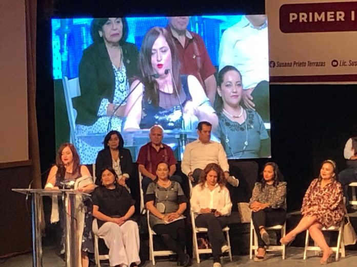 Ciudad Juárez, Chihuahua (ADN / Martín Orquiz) – La diputada federal de Morena por la primera circunscripción, Susana Prieto Terrazas, rindió su informe legislativo ante trabajadores de diferentes ciudades y una veintena de legisladores, a quienes les pidió hacer más de lo logrado para respaldar a la clase obrera de México.