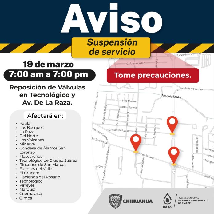 Ciudad Juárez, Chih .- Las acciones impactarán en la distribución del líquido a los residentes de los siguientes fraccionamientos: