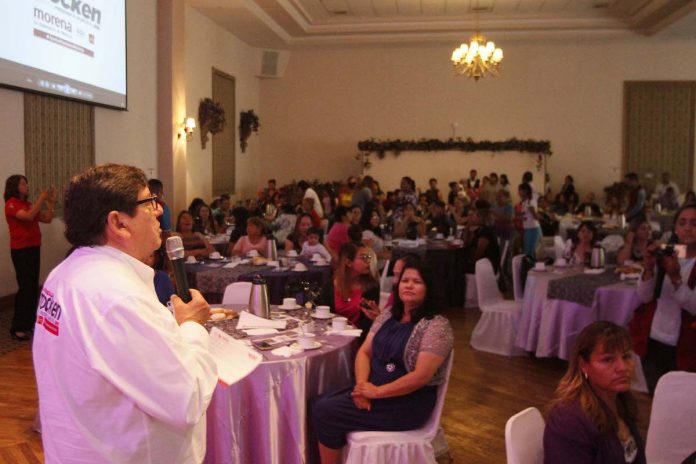 Ciudad Juárez, Chih. – La población se cansó de la simulación, expresó Javier González Mocken, candidato a la presidencia municipal por Morena, PT y Encuentro Social, ante más de 300 mujeres del Partido Encuentro Social.
