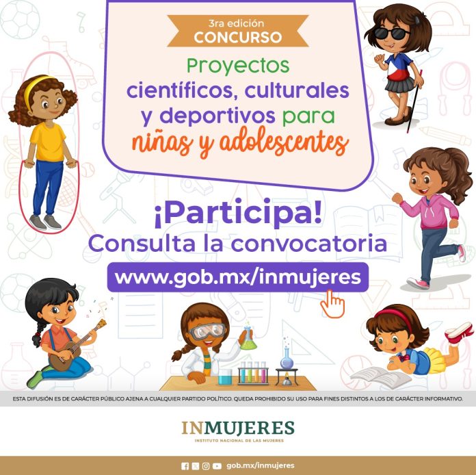 El Instituto Nacional de las Mujeres (INMUJERES) invita a participar en la tercera edición del concurso Proyectos Científicos, Culturales y Deportivos para niñas y adolescentes, el cual dará inicio el 25 de marzo.
