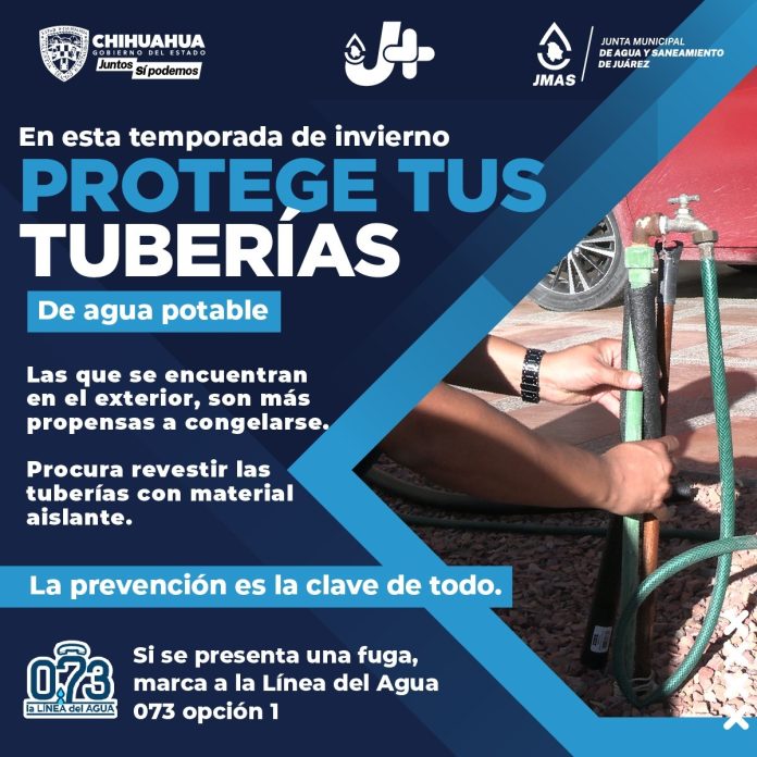 Ciudad Juárez, Chihuahua (ADN / Martín Orquiz) – Las tuberías que están a la intemperie deben ser protegidas para evitar que se congelen y sufran daños ante las bajas temperaturas que empezarán a registrarse por la temporada invernal, dio a conocer personal de la Junta Municipal de Agua y Saneamiento (JMAS) en un comunicado.