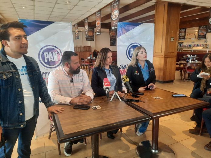 Juárez, Chih (ADN/Adriana Saucedo) Xochitl Contreras, Presidenta Municipal del PAN, Gabriel García Cantú, diputado local y la diputada federal Daniela Álvarez, declararon su inconformidad ante el tratamiento del Gobierno Federal al problema migratorio en la frontera.