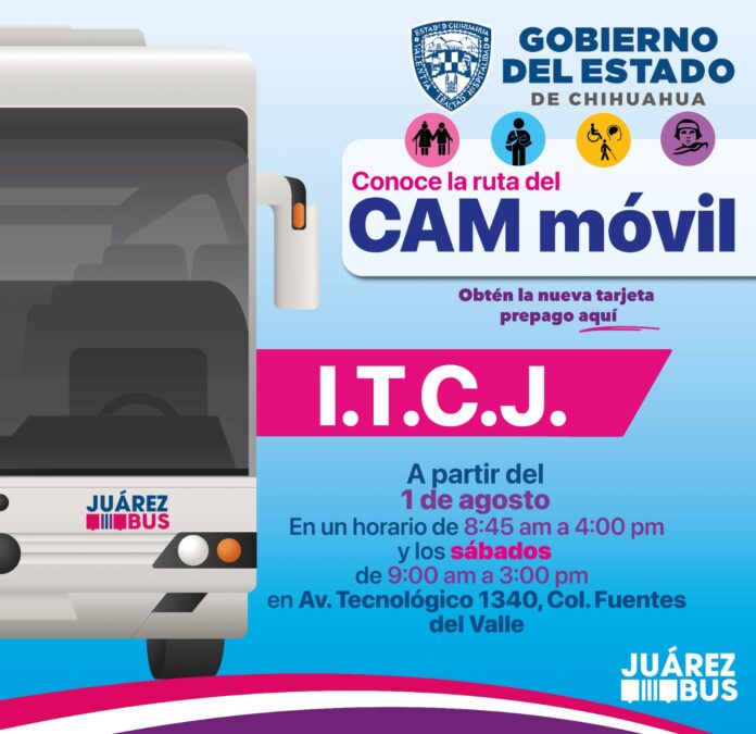 Ciudad Juárez, Chih .- La Operadora de Transporte (OTV), invita a la población a aprovechar el servicio que ofrece la unidad del Centro de Atención a la Movilidad (CAM Móvil), que visitará la Fundación Villa Integra y el Instituto Tecnológico de Ciudad Juárez (ITCJ), donde expedirá credenciales generales y preferentes del sistema JuárezBus.