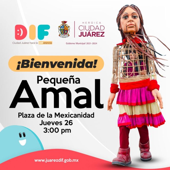 Ciudad Juárez, Chih .- La pequeña Amal ha visitado 120 ciudades de Europa y Estados Unidos y ahora inicia una nueva aventura en México entrando por Ciudad Juárez para traer su presencia y mensaje de esperanza a la comunidad fronteriza.