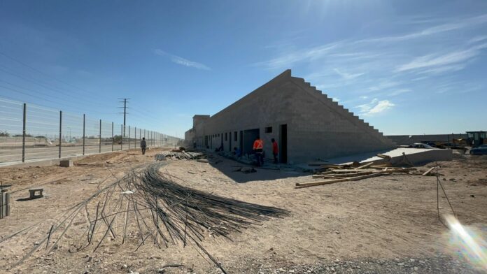 Ciudad Juárez, Chih .- Daniel González García, titular de la dependencia, comentó que actualmente se trabaja en el canal de desagüe perimetral a la cancha, sellos en los muros y lozas, en los detalles de los módulos establecidos, así como otras acciones en lo que será el estacionamiento.