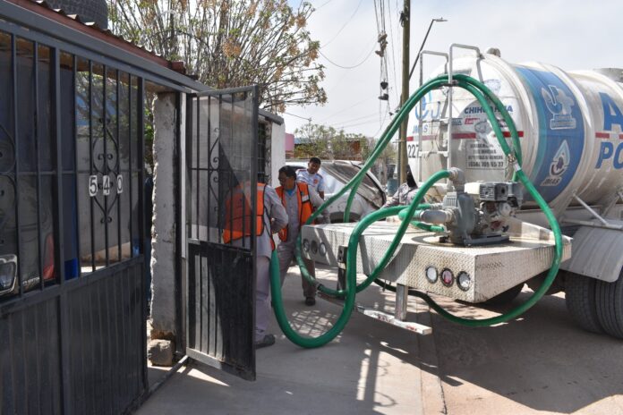 Ciudad Juárez, Chih .- Debido a que se descompuso un pozo que abastece el tanque ubicado en este sector de la ciudad y para atender el desabasto, el Departamento de Agua Potable de la Junta de Agua y Saneamiento de Juárez programó la entrega gratuita de agua a los residentes afectados por esta situación.