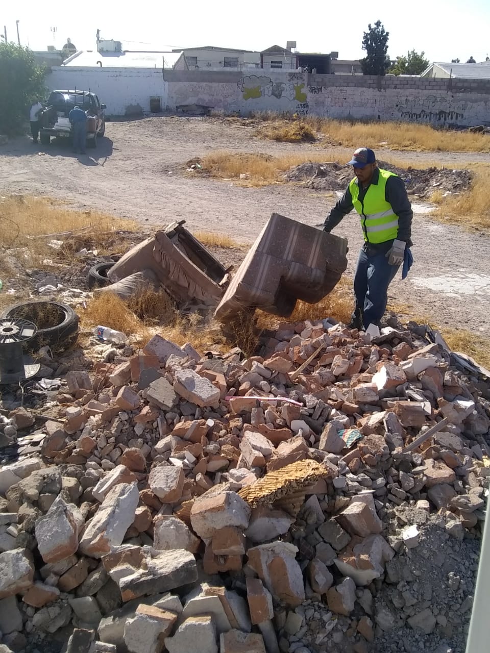 Ciudad Juárez, Chih. – Con el objetivo de evitar la acumulación de desechos en la vía pública, la Dirección General de Servicios Públicos lleva a cabo este día un operativo de “destilichadero” en la colonia Eréndira, como parte del programa de mejoramiento urbano, “A Toda Máquina”.
