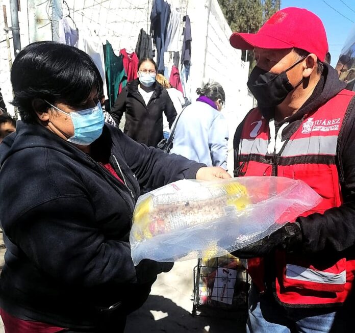 Ciudad Juárez, Chih.- A través de la Dirección General de Desarrollo Social, llevó a cabo la entrega de apoyos alimenticios para más de 300 familias en situación vulnerable que habitan en las colonias Los Arcos, Torres del PRI y Torreón.