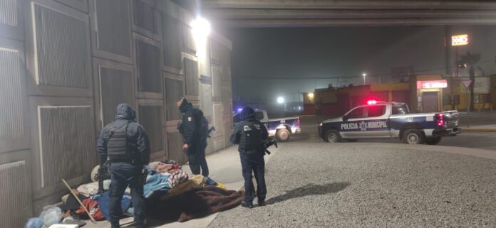 Ciudad Juárez, Chih (ADN/Arturo Hernández) .- Agentes de la Policía Municipal se unieron a las labores de rescate de personas en condición de calle a con secuencia de las bajas temperaturas que afectan a la región, y que esta madrugada llegaron a los – 5 grados centígrados.