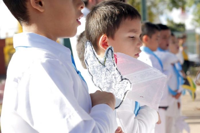 Con música, poesía, cuadros representativos y semblanza histórica los alumnos mostraron a su padres, maestros y autoridades educativas y municipales su convicción por la búsqueda de la paz como uno de los derechos de la infancia.
