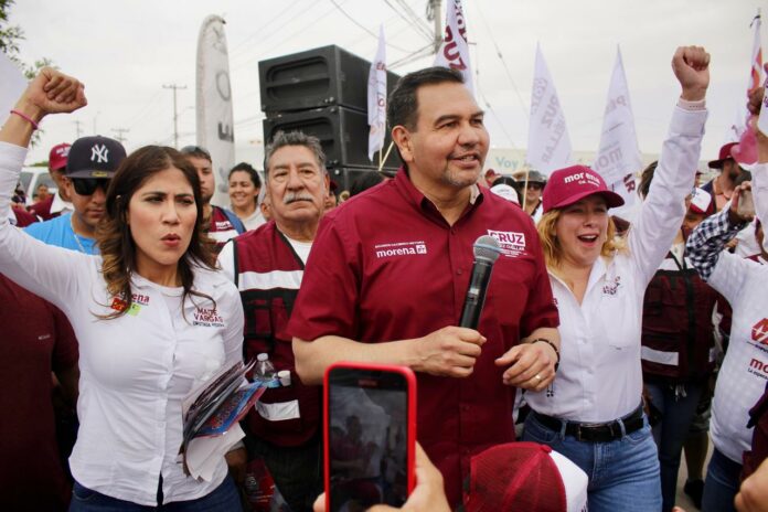Ciudad Juárez, Chih. (ADN/Staff) – En un ambiente de apoyo y unidad, Maite Vargas, candidata a Síndica Municipal por la coalición MORENA-PT, compartió su tercer día de campaña junto a Cruz Pérez Cuéllar, candidato a la presidencia municipal de Ciudad Juárez. Juntos recorrieron varios cruceros de la ciudad, donde interactuaron directamente con los ciudadanos y expusieron sus visiones y propuestas.