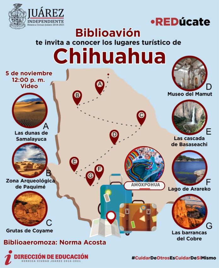 Este video informativo se podrá encontrar en la página de Facebook/EducacionCdJuarez, además se comentó que el día de mañana se publicará una capsula informativa sobre los lugares turísticos en el estado de Chihuahua.
