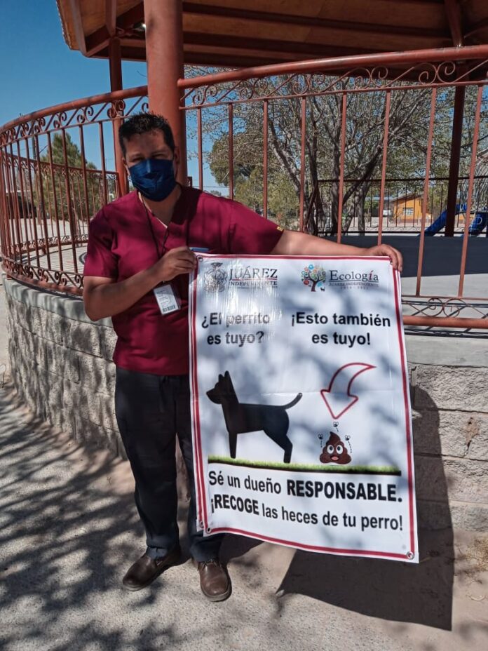 Ciudad Juárez, Chih.- La titular de la dependencia informó que El Millón actualmente realiza diferentes acciones para convertirse en un poblado saludable, por lo que acudió personal de Ecología con la campaña “No le tires basura a Juárez ¿Qué pues?” para colocar en la plaza información solicitando a los dueños de perros que sean responsables y eviten tirar basura.
