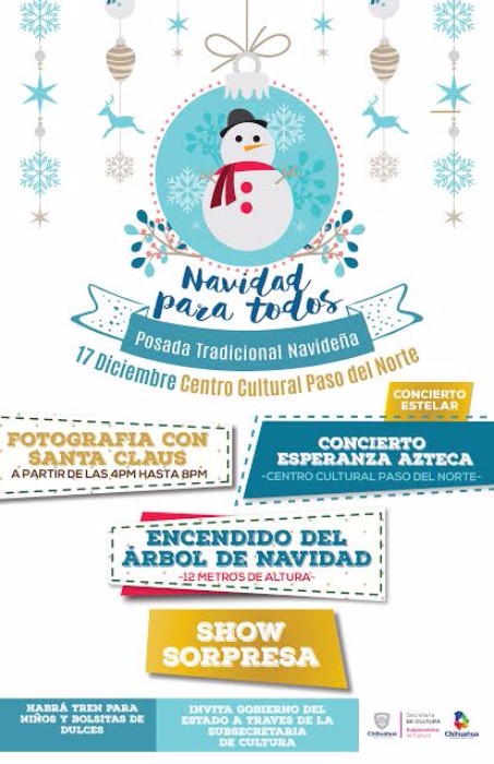Ciudad Juárez, Chihuahua.- La Subsecretaría de Cultura busca mantener vivas las tradiciones decembrinas y para ello organiza una posada navideña este sábado 17 de diciembre de 4:00 p.m. a 8:00 p.m..