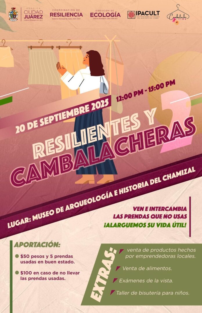El Gobierno Municipal, a través de la Coordinación de Resiliencia, Dirección de Ecología y el Instituto para la Cultura del Municipio de Juárez (IPACULT), en colaboración con la agrupación Cambalache Time, prepara su segundo evento de ‘cambalache’ de ropa.