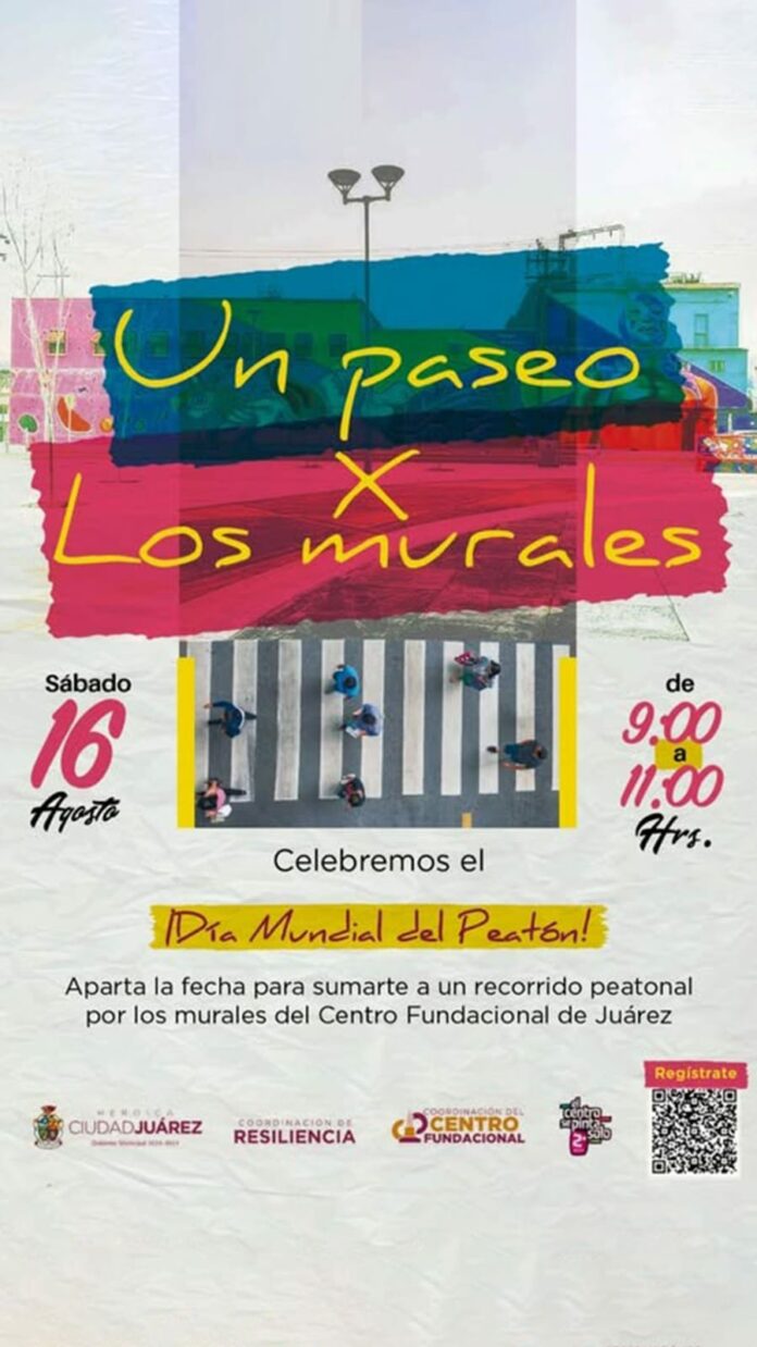 La Coordinación del Centro Fundacional, en conjunto con la Coordinación de Resiliencia del Gobierno Municipal invitan a la comunidad a participar en “Un paseo por los murales”, actividad que se llevará a cabo el próximo sábado 16 de agosto a las 9:00 de la mañana.