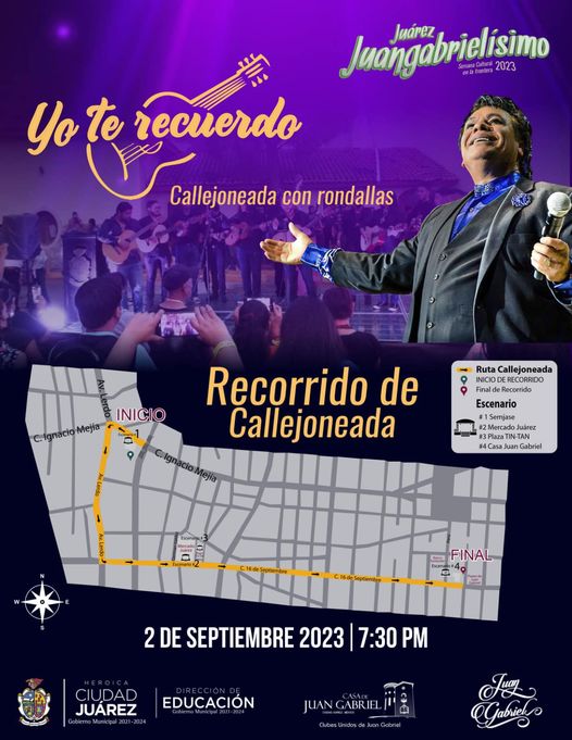 Posteriormente caminarán rumbo a la calle Lerdo tocando y cantando las canciones inspiradas por el cantautor, hasta llegar a la avenida 16 de Septiembre para concluir en la casa de Juan Gabriel.