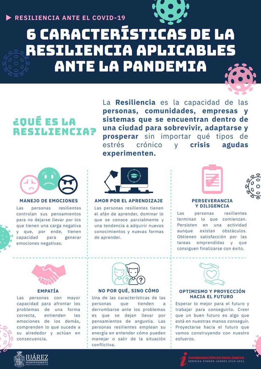 Ciudad Juárez, Chih. – Con la finalidad de que la comunidad reciba diversas características aplicables de resiliencia para sobrellevar la contingencia por el Coronavirus COVID-19, la Coordinación de Resiliencia del Municipio publicará diversas infografías, así lo dio a conocer Verónica González Sepúlveda.