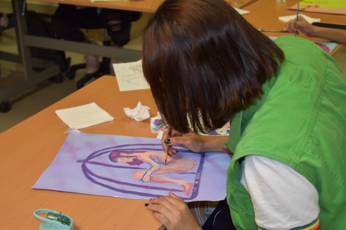 Durante la tarde de ayer el grupo Bravas Colectiva compartió algunas técnicas para que las participantes plasmaran sus dibujos, además hablaron sobre el impacto de las intervenciones de arte urbano creado por mujeres, la reapropiación del espacio y el valor del rol de las mujeres artistas.