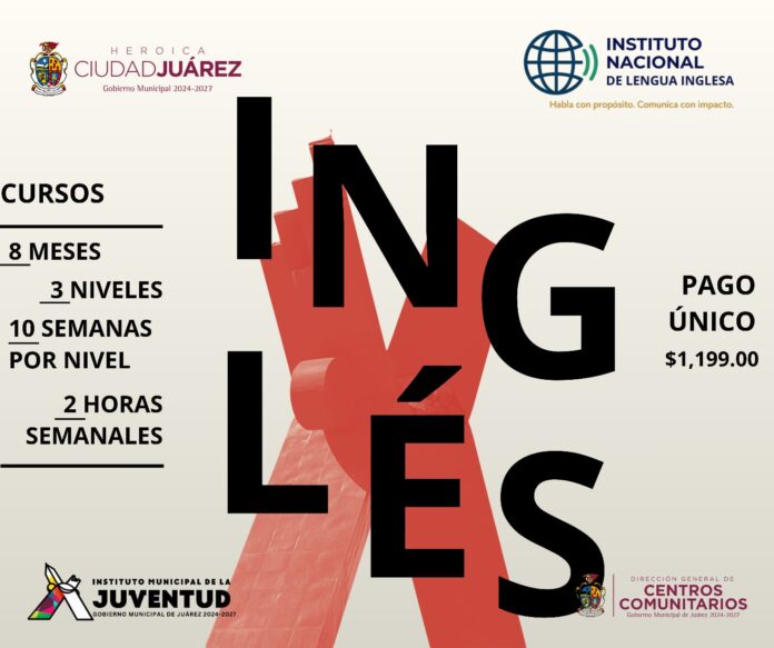 Con el firme compromiso de seguir creando espacios que impulsen a las juventudes juarenses y a la comunidad en general, el Instituto Municipal de la Juventud de Juárez, en coordinación con la Dirección General de Centros Comunitarios y el Instituto Nacional de Lengua Inglesa, invita a participar en la Clase Muestra de Inglés.