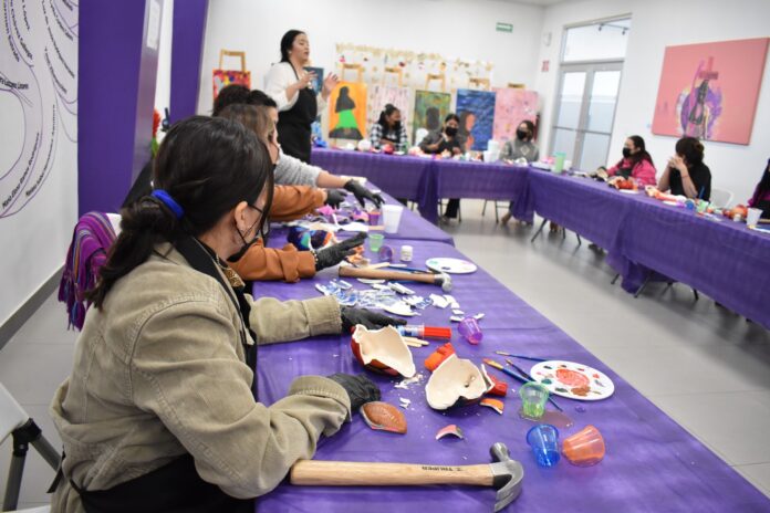 Con la finalidad de promover actividades para el fortalecimiento y el cuidado de las usuarias del Instituto Municipal de las Mujeres de Juárez (IMM), se llevó a cabo el taller de kintsugi “En piezas de oro”, impartido por la tallerista Melissa Ramírez, dirigido a las integrantes de las Redes de Mujeres Constructoras de Paz (MUCPAZ).