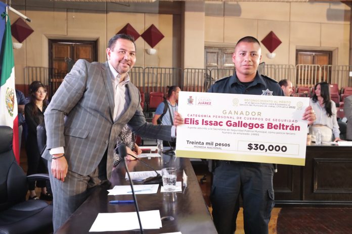 Se destacó que el agente de la Secretaría de Seguridad Pública Municipal, Elis Isaac Gallegos Galván, tiene un expediente limpio y ejemplar, siempre está dispuesto para proteger a todos los juarenses.