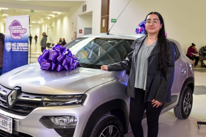 La ceremonia se efectuó en la Unidad Administrativa “José María Morelos y Pavón”, donde autoridades educativas entregaron las llaves de un vehículo Renault Kwid 2025 a Sofía, quien es egresada de la Licenciatura en Enseñanza del Inglés, por la Universidad Autónoma de Ciudad Juárez (UACJ).