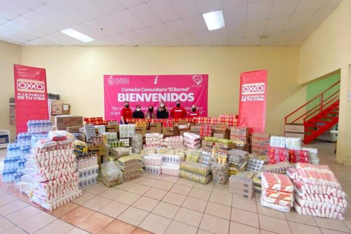 Ciudad Juárez, Chih. – Con el objetivo de que personas en condición vulnerable continúen recibiendo diariamente alimentos en los comedores comunitarios El Barreal y Siglo XXI, la empresa Tiendas OXXO Juárez, hizo un importante donativo a DIF Municipal.