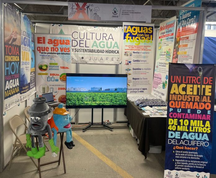 Ciudad Juárez, Chih .- En el evento que se realiza en el edificio CEPIA, se instaló un stand en el cual se les da una plática informativa a los asistentes sobre el cuidado del agua.