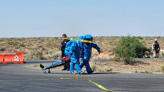 Con la finalidad de estar preparados en caso de presentarse una emergencia química, se llevó a cabo un simulacro binacional por fuga de gas cloro, en el cual participó la J+.