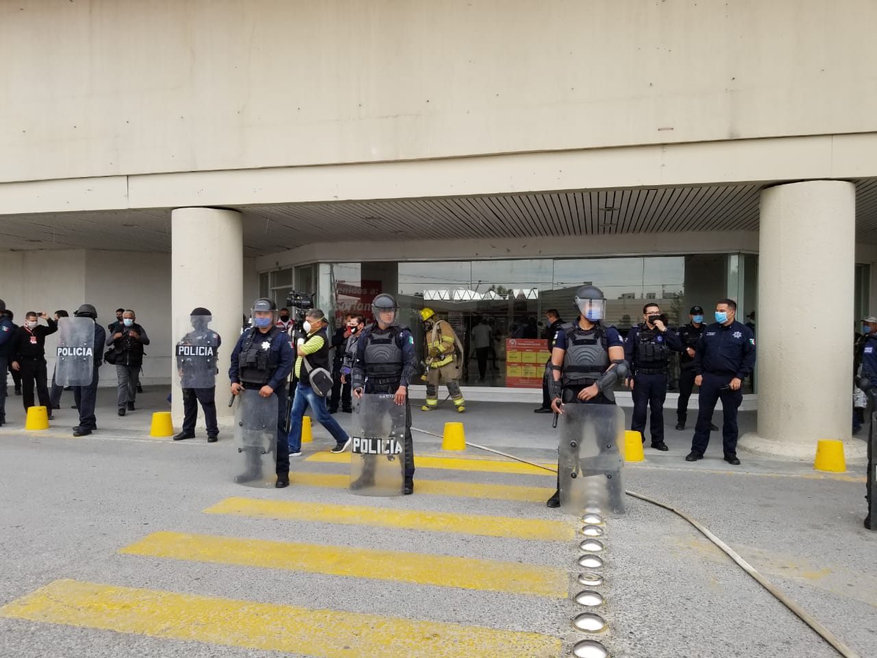Ciudad Juárez, Chih. – La Dirección General de Protección Civil, a través del Heroico Cuerpo de Bomberos y de Rescate, participó esta mañana en el simulacro de saqueo que realizó la Secretaría de Seguridad Pública Municipal (SSPM).