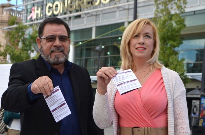 Chihuahua, Chih. – Los diputados de Morena, Miguel Ángel Colunga Martínez y Ana Carmen Estrada García, participaron en la consulta para el nuevo aeropuerto de la Ciudad de México, en la casilla que se colocó en la plaza de armas de la ciudad de Chihuahua.