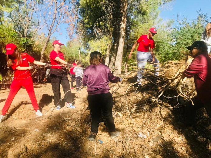 Ciudad Juárez, Chih .- “Le dije a mi hija que me trajera para colaborar. Ella me está acompañando para retirar ramas secas y amontonarlas, las cuales serán trituradas para composta, según nos explicaron”, compartió entusiasta la señora Díaz.