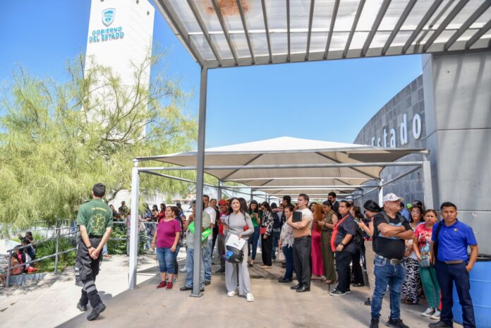 Ciudad Juárez, Chih .- Con el objetivo de salvaguardar la seguridad de la ciudadanía al garantizar una correcta preparación, un total de 686 personas fueron evacuadas este viernes de la Unidad Administrativa José María Morelos del Gobierno del Estado, conocida como Pueblito Mexicano, durante un simulacro de sismo de 6.5 grados en la escala de Richter.