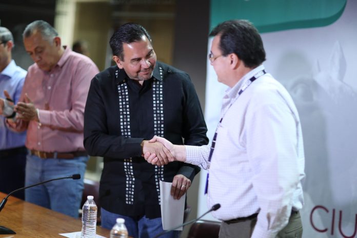 Ciudad Juárez, Chih .- La entrega tuvo lugar en la sala José Reyes Estrada de la Unidad Administrativa “Lic. Benito Juárez”, donde el alcalde reiteró la disposición de la administración que encabeza para seguir trabajando de la mano con otras instancias de Gobierno.