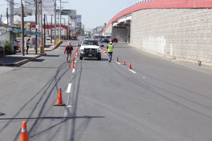 Ciudad Juárez, Chih .- Estos trabajos, que son parte de la Cruzada por la Mejora Vial, otorgarán mayores beneficios al conducir sobre las avenidas de la ciudad, toda vez que, los guiadores podrán distinguir de una mejor manera los carriles en las vialidades de la localidad.