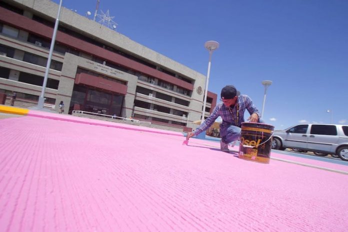 Ciudad Juárez, Chih. – Como un plan piloto que se replicará a las demás dependencias, el gobierno municipal pinta cajones rosas destinados a mujeres embarazadas, o embarazadas que aparte cargan con sus hijos pequeños.