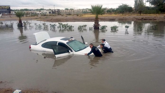 Así mismo, rescataron a un masculino y remolcaron su vehículo compacto de color blanco, que quedó inundado en el mismo sitio.